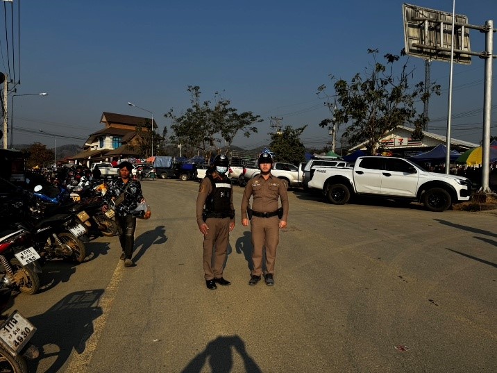 เมื่อวันที่ 23 พ.ย. เวลา 08.00 ชุดปฏิบัติการจราจรได้มีการรักษาความปลอดภัยและอำนวยความสะดวกด้านการจราจรร่วมกับหน่วยงานอื่นให้กับนักท่องเที่ยวและประชาชนในพื้นที่บริเวณตลาดนัดชายแดนห้วยโก๋น อ.เฉลิมพระเกียรติ จว.น่าน