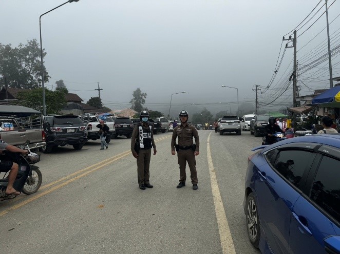 เมื่อวันที่ 28 ธ.ค. เวลา 08.00 ชุดปฏิบัติการจราจรได้มีการรักษาความปลอดภัยและอำนวยความสะดวกด้านการจราจรร่วมกับหน่วยงานอื่นให้กับนักท่องเที่ยวและประชาชนในพื้นที่บริเวณตลาดนัดชายแดนห้วยโก๋น อ.เฉลิมพระเกียรติ จว.น่าน