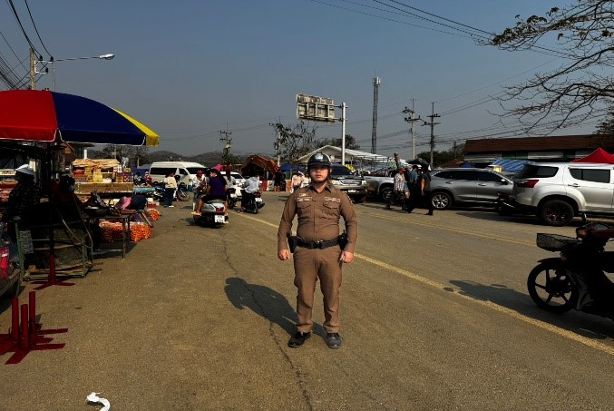 เมื่อวันที่ 4 ม.ค. เวลา 08.30 ชุดปฏิบัติการจราจรได้มีการรักษาความปลอดภัยและอำนวยความสะดวกด้านการจราจรให้กับนักท่องเที่ยวและประชาชนในพื้นที่บริเวณตลาดนัดชายแดนห้วยโก๋น อ.เฉลิมพระเกียรติ จว.น่าน