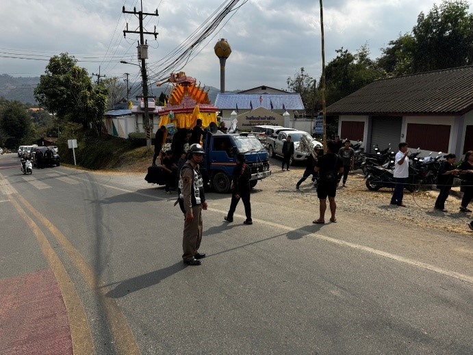 เมื่อวันที่ 7 ก.พ. เวลา 13.00 ชุดปฏิบัติการจราจรได้มีการรักษาความปลอดภัยและอำนวยความสะดวกด้านการจราจรในงานพิธีเผาศพของประชาชนในพื้นที่อำเภอเฉลิมพระเกียรติ