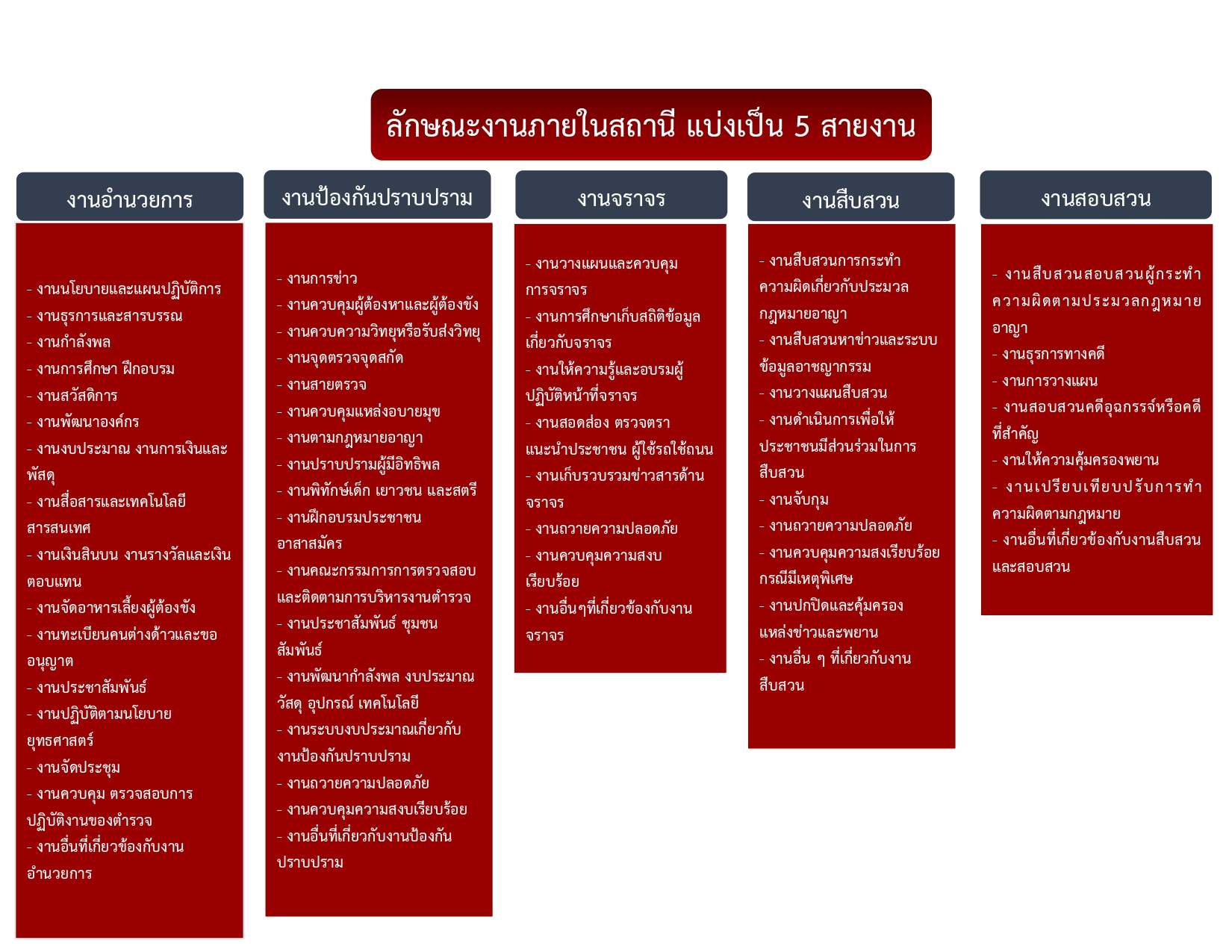 - ปฏิบัติการอื่นใดตามที่กฎหมายกำหนดให้เป็นหน้าที่ของตำรวจหรือสำนักงานตำรวจแห่งชาติ