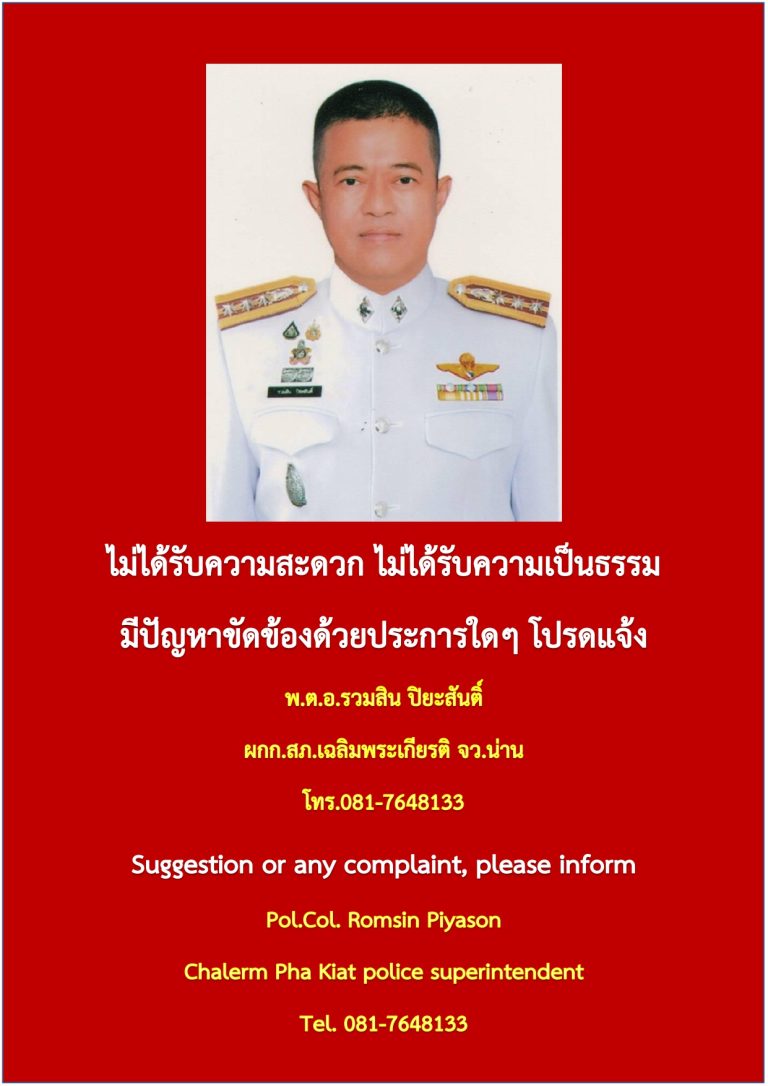 สภ.เฉลิมพระเกียรติ 192 ม.1 ต.ห้วยโก๋น อ.เฉลิมพระเกียรติ, น่าน 55110