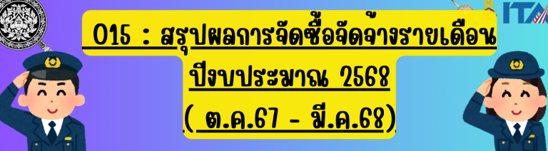 สรุปผลการดำเนินการจัดซื้อจัดจ้างในรอบเดือน ธ.ค.67 ปีงบประมาณ พ.ศ. 2568 ( คลิกที่นี่